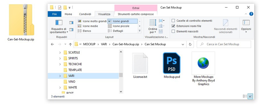 Apri la cartella compressa e cerca il file con l’estensione .psd. Ecco, quello è il file che devi utilizzare per modificare il mockup, quindi fai doppio clic su di esso e aprilo con Photoshop. Se nella cartella che hai scaricato troverai più file PSD, significa che in quel pacchetto sono disponibili più modelli, probabilmente con orientamenti e caratteristiche diverse.